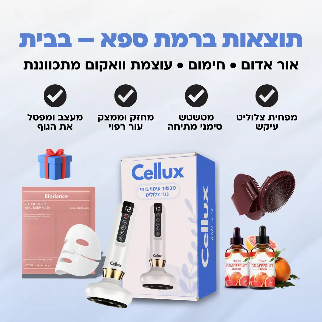 בחודשים האחרונים, יותר ויותר נשים בישראל משתפות תוצאות מפתיעות בעקבות שימוש במכשיר חדש – Cellux – עיסוי ביתי המשלב טכנולוגיות מתקדמות, שבעבר היו שמורות רק לקליניקות אסתטיקה מקצועיות.